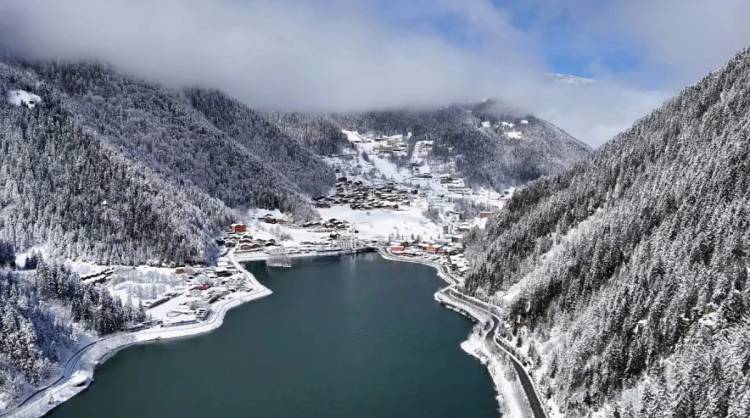 Bahar ayında kış soğuğu! Trabzon'da Uzungöl karla kaplandı