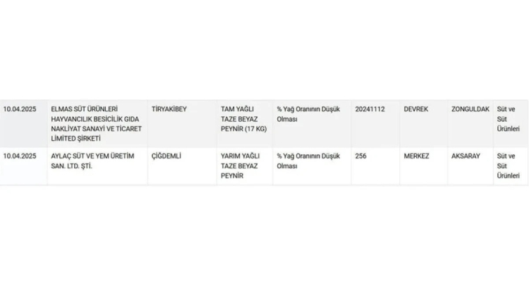 10 Nisan Perşembe günün bakanlığın resmi sitesi üzerinden yayınlanan taklit ve tağşiş listesinde 10 farkı peynir markası daha yer aldı.