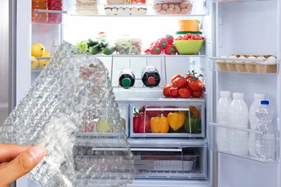 Baloncuklu naylonu buzdolabına koyun, tem tasarruf edin hem tazeliği garantileyin...