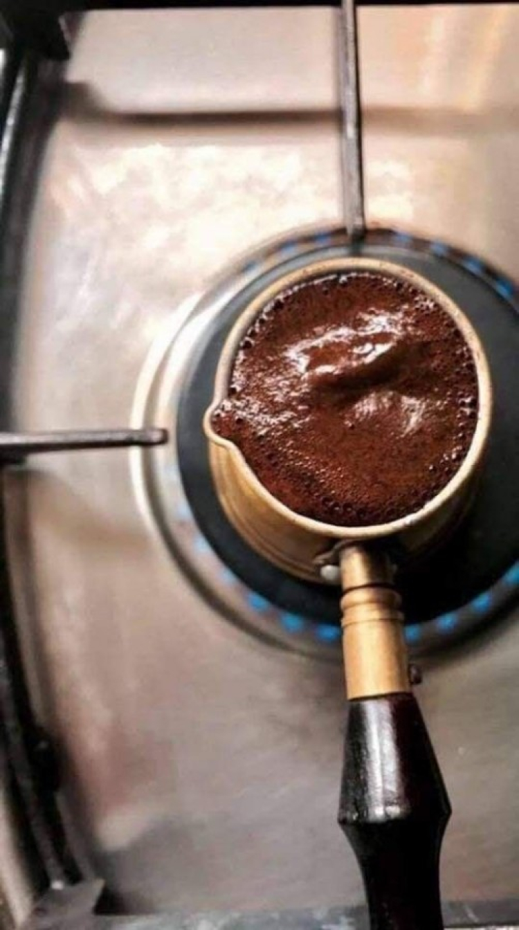 Kısık ateşte pişirdiğiniz türk kahvesini kaynamaya yakın ocaktan alıp fincanınıza dökünüz.