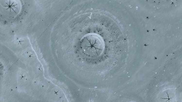 Beyaz ve açık mavi tonların hakim olduğu buz tabakası, havadan bakıldığında insan gözünün iris ve göz bebeğini çağrıştıran doğal desenler oluşturdu.