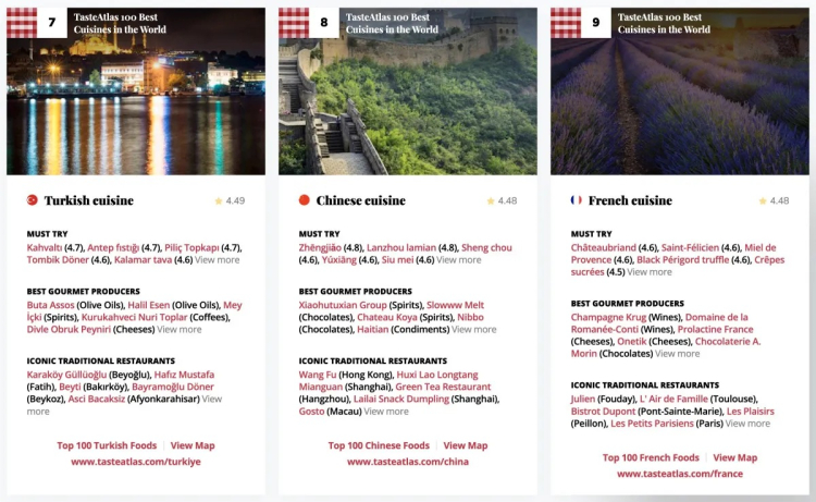 Listenin son sırasında Kıbrıs mutfağı bulunurken Türk mutfağı, 7. sıradan listeye girdi.