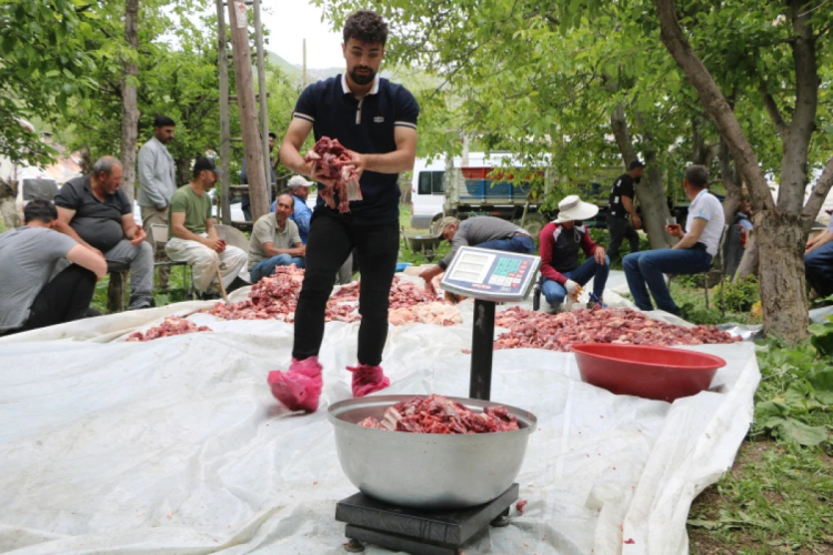 Hakkari'de asırlık gelenek: Kurban eti 200 haneye eşit dağıtıldı