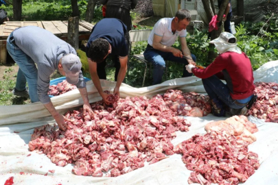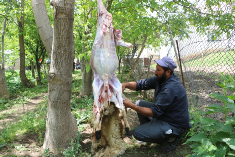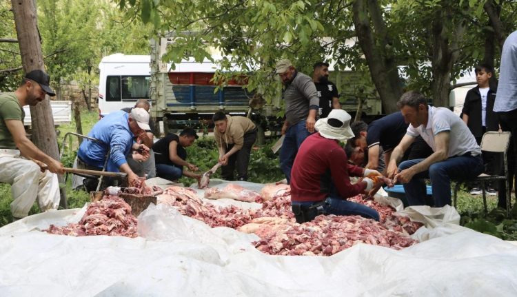 Bayram namazı sonrası, köy meydanına getirilen 100 küçükbaş hayvan kesilip, etleri eşit bir şekilde ayrıştırıldı.Kurbanlık etler, daha sonra köydeki 200 haneye dağıtıldı.