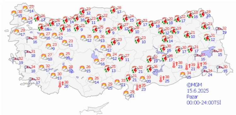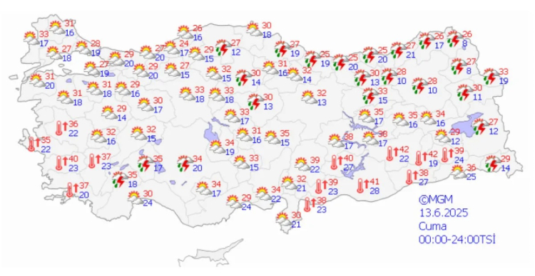 Ankara'da yarın ve hafta sonu yağış beklenmediğini belirten Tekin, "Parçalı az bulutlu bir hava hakim olacak. Cuma günü 33 derece, cumartesi 29 derece ve pazar günü ise 25 dereceye kadar hava sıcaklığı düşecek." ifadelerini kullandı.Tekin, İstanbul'da yarın ve cumartesi yağış beklentisinin olmadığını ancak pazar günü sağanak ve yer yer gök gürültülü sağanakların görüleceğini anlatarak, kentte havanın cuma günü 28, cumartesi 26, pazar günü ise 25-26 derece civarında seyredeceğini söyledi.İzmir'de ise yarın ve hafta sonu yağış beklenmediğini bildiren Tekin, kentte hava sıcaklığının 32 ile 35 derece arasında seyredeceğini ve rüzgarın kuzeyden kuvvetli eseceğini kaydetti.
