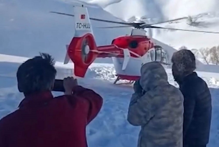 Hakkari'nin Şemdinli ilçesinde kar ve tipi nedeniyle yolu kapanan Alan köyünde sancıları başlayan hamile kadın, Sağlık Bakanlığına ait ambulans helikopterin dondurucu soğuk ve sarp araziye göğüs geren operasyonuyla hastaneye ulaştırıldı.