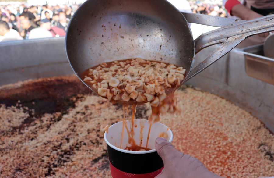 Kayseri'de 1 ton mantı 1 kazanda pişirilerek dünya rekoru kırıldı.
