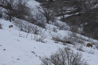 Tunceli ile Erzincan sınırında yer alan Sansa Vadisinde leşe gelen ayı ve kurt aynı karede görüntülendi.